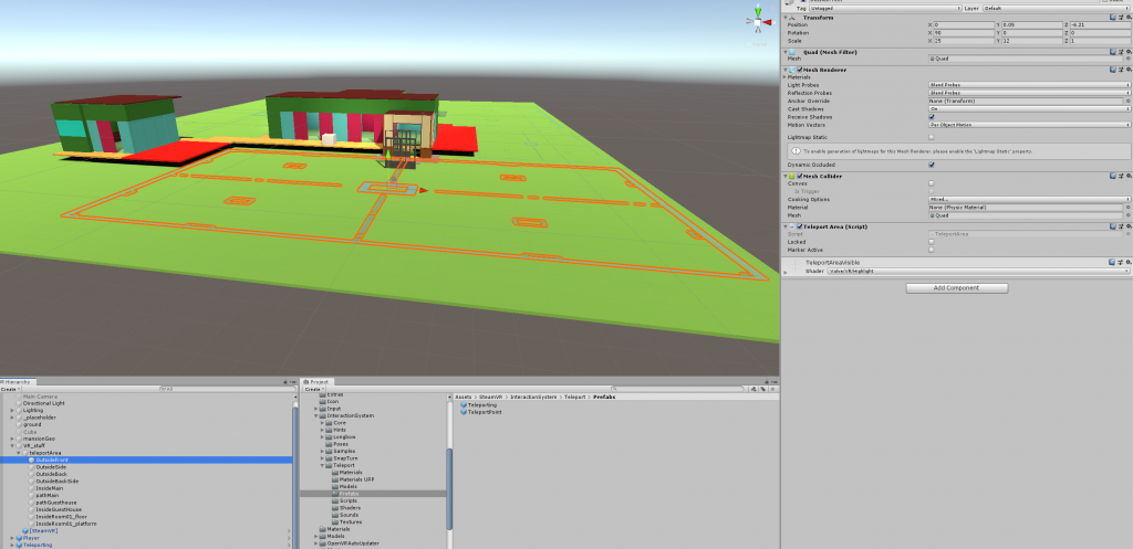 4. Create a quad, plane, or box. Add SteamVR Teleport Area script.